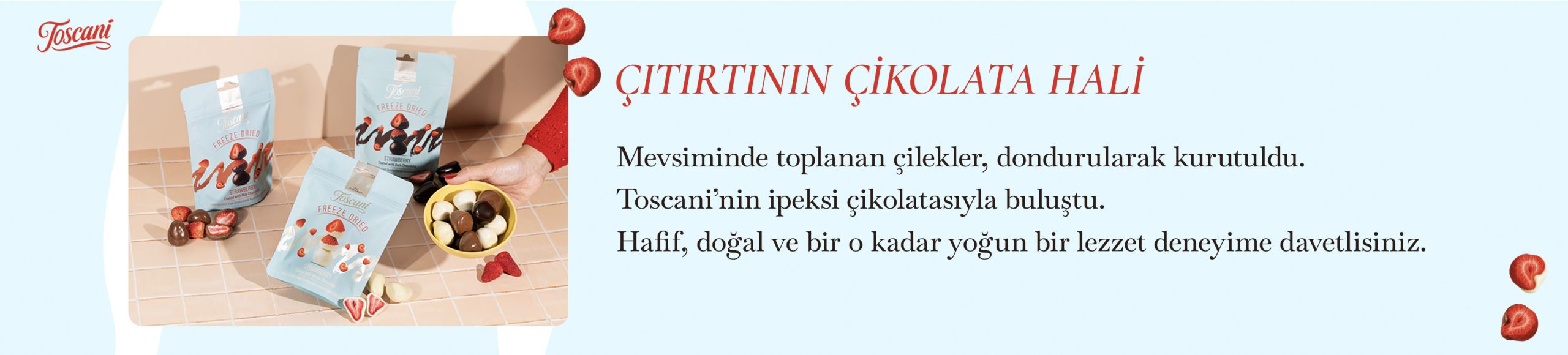 Her ısırıkta yoğun kakao lezzeti, ustalıkla harmanlanmış dolgu çeşitleri ve zarif dokunuşlar… Toscani çikolataları, özenle seçilmiş malzemeler ve kusursuz tariflerle sizin için üretildi. Keyfini çıkarın, paylaşın, özel anlara lezzet katın.