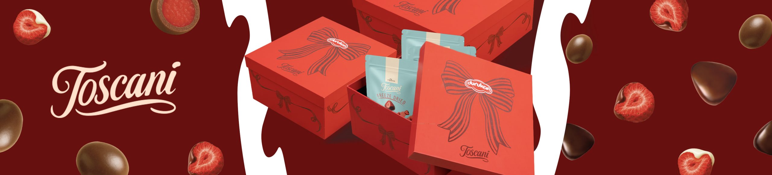 Assorted boxes where the world of Toscani chocolate meets the rich confectionery heritage of Durukan Confectionery.